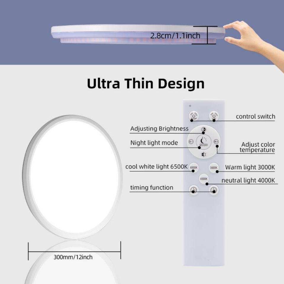 Smart Ultra-Thin LED Ceiling Light Dimmable Three-Color with Remote Control Indoor for Living Room Bedroom