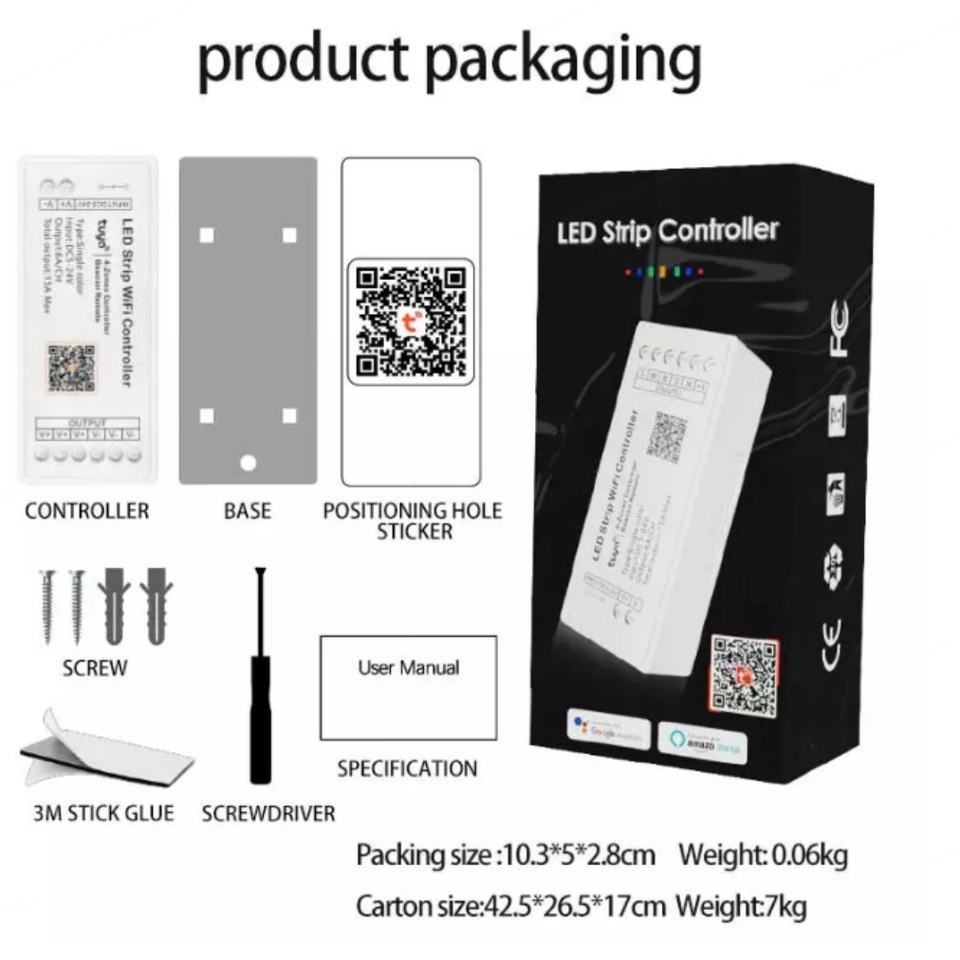 Smart Voice Strip Led Rgbw Controller 4 Zones Wifi Beacon Remote 2.4g DC5v12v24v 15A Tuya App 432W Max Load