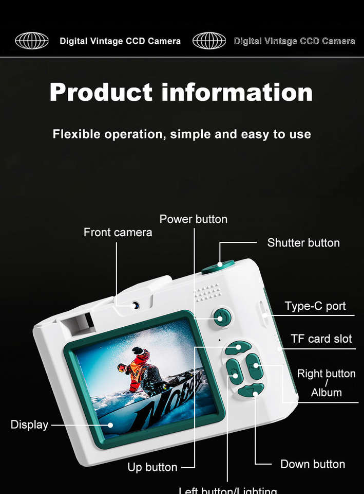 Smart WiFi Digital Camera 4X Optical Zoom Wide Angle 2.0 Inch Screen Selfie Dual Lenses CCD Camcorder SD Card HD Video Selfie
