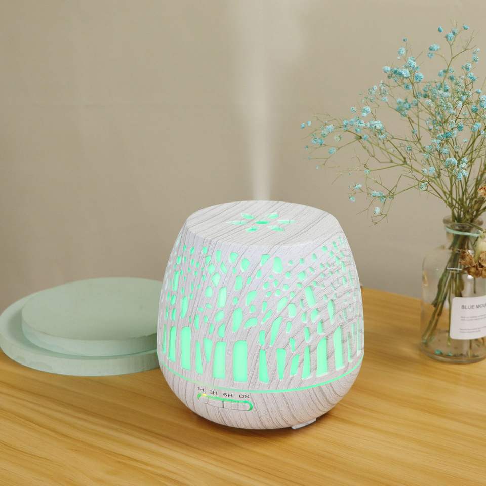 Smart Wood Grain Aroma Diffuser 0.5L With Led Light Remote Control Humidifier For Home Office Desktop Use