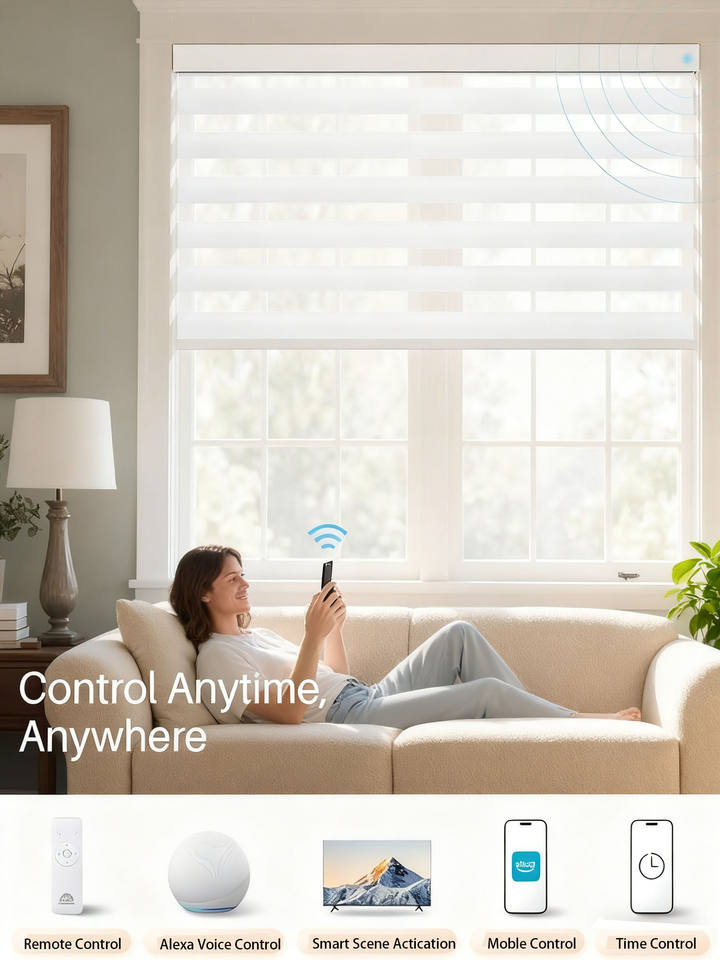 Smart Zebra Blinds for Windows with Remote Control, Automatic Electric Power Roller Blinds for Indoor Windows