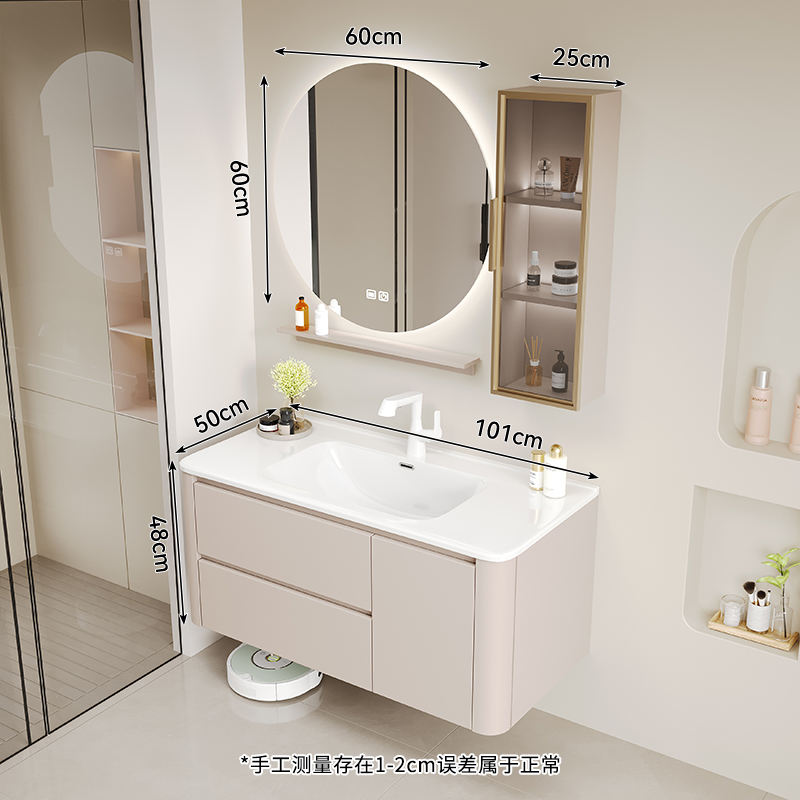 Smart round mirror Cream style bathroom cabinet combination modern simple bathroom integrated wash basin