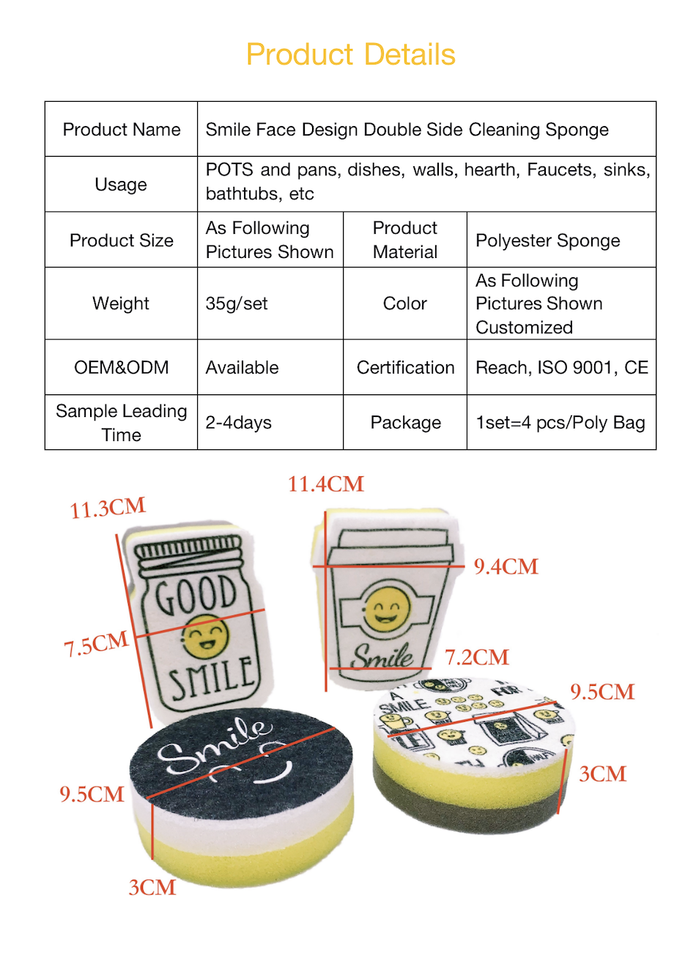 Smile Face Design Double Side Disinfect Bottle Cleaning Sponge Foam for POTS and Washes Pans Dishes Walls Hearth Faucets Sinks
