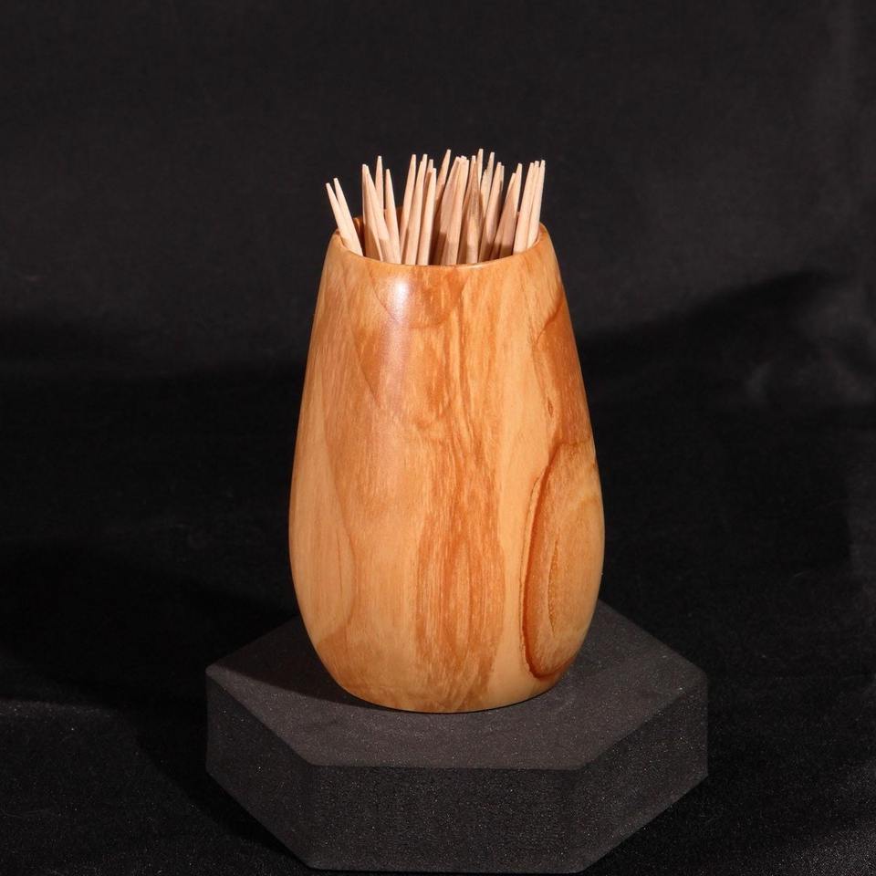 Smiley face wooden toothpick holder cone shape handcrafted fun design mini container cute tabletop decor rustic wood accessory