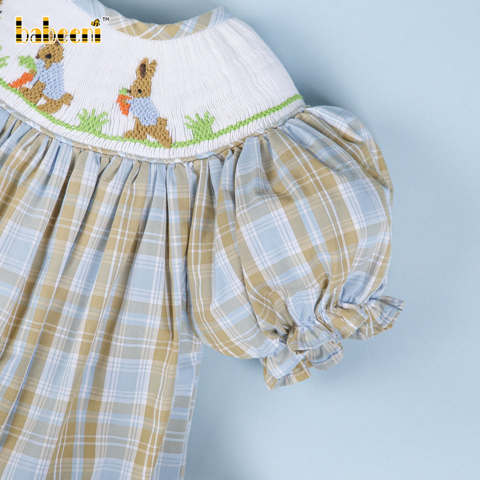 Wholesale OEM ODM Girls Short Sleeve Casual Dress BB2702 Hand Smocked Bunny Carrot Design 100% Cotton Midi Winter for Children