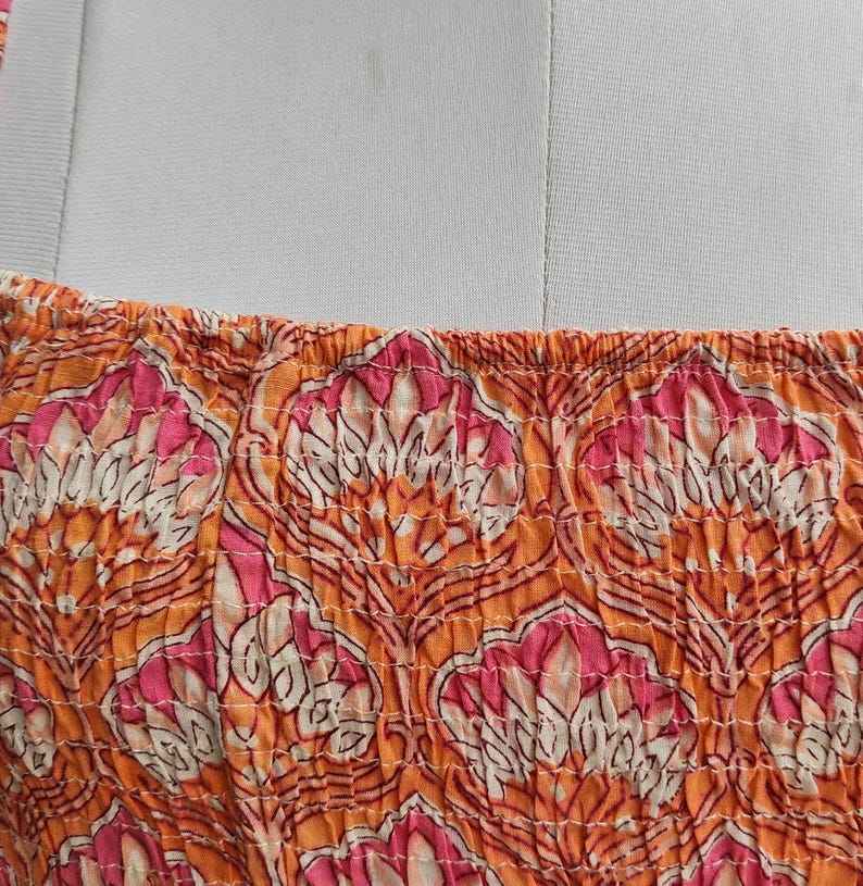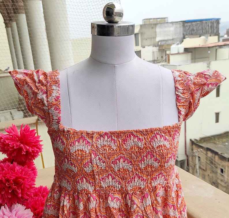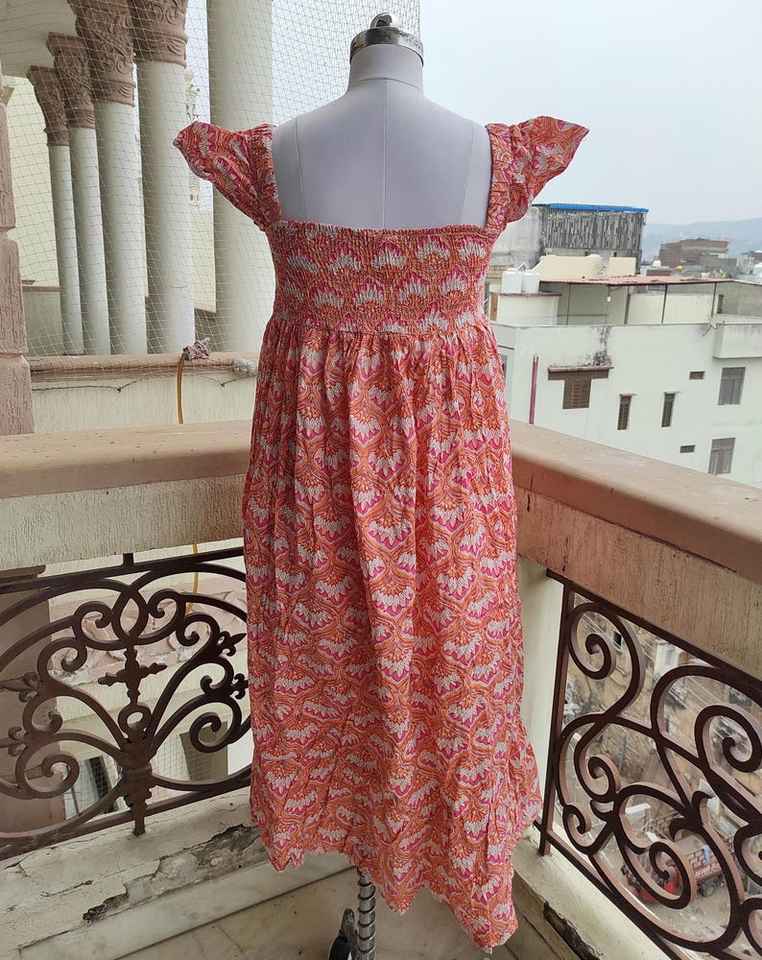 Smocking Cotton Long Dress Bohemian Block Printed Maxi Dress Smocked Boho Chic Summer Dress for Women in Premium Cotton