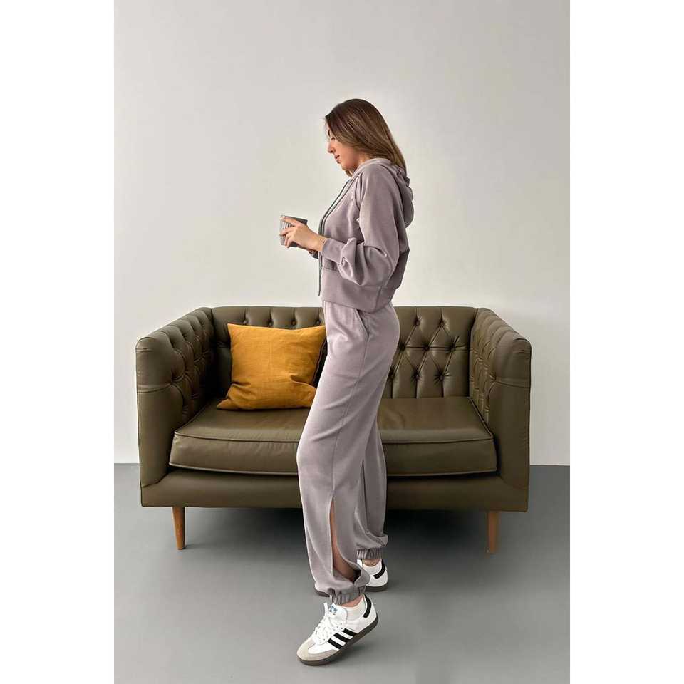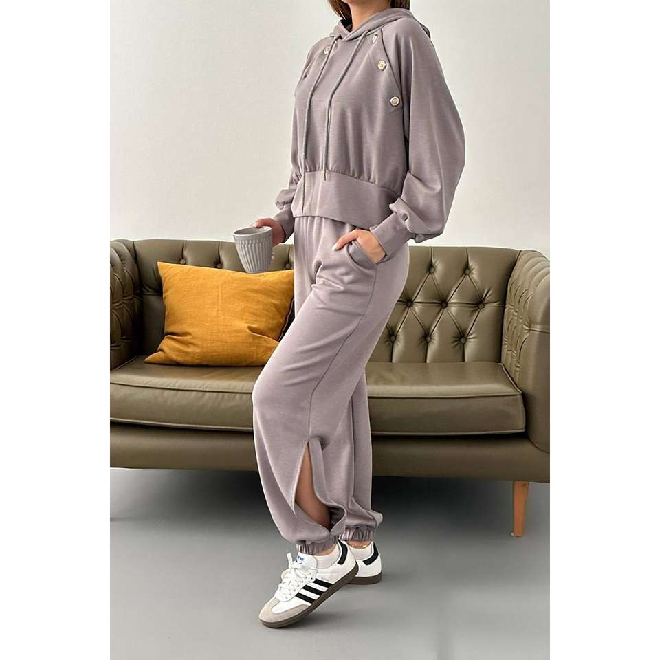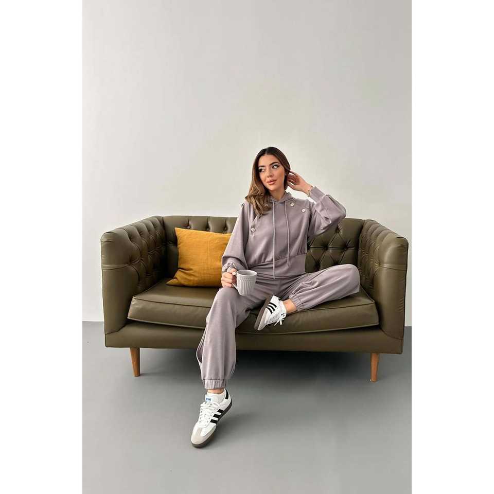 Smoke Grey Hooded Sweatshirt And Cargo Pants Set Women Fleece Casual Full Sleeve Breathable Jogger Outfit