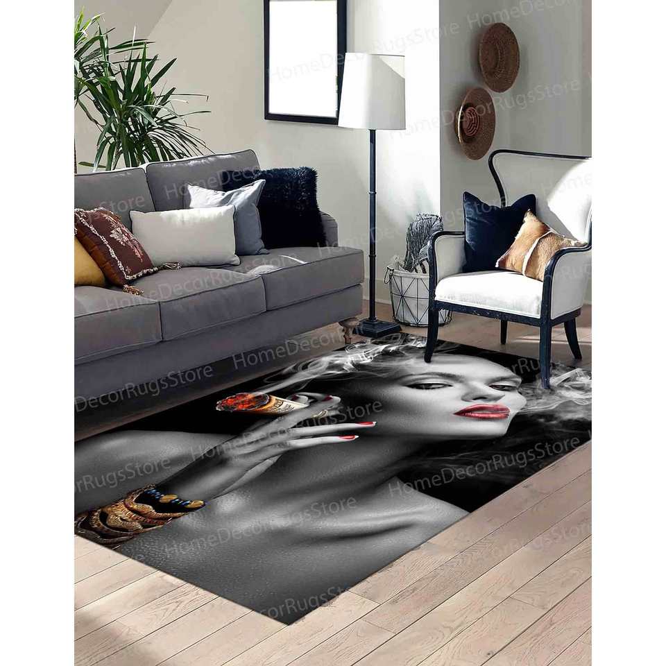 Smoking Woman Printed Rug - Unique Design for Man Cave, Living Room,Nonwoven Soft Rug