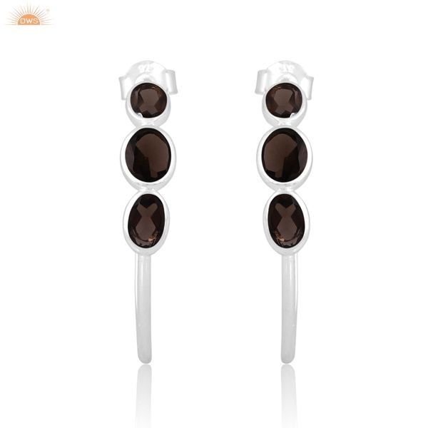 Smoky Oval Shape Brown Gemstone Hoop Style Wedding Earrings 925 Sterling Silver Designer Hoop Jewelry Jewelry