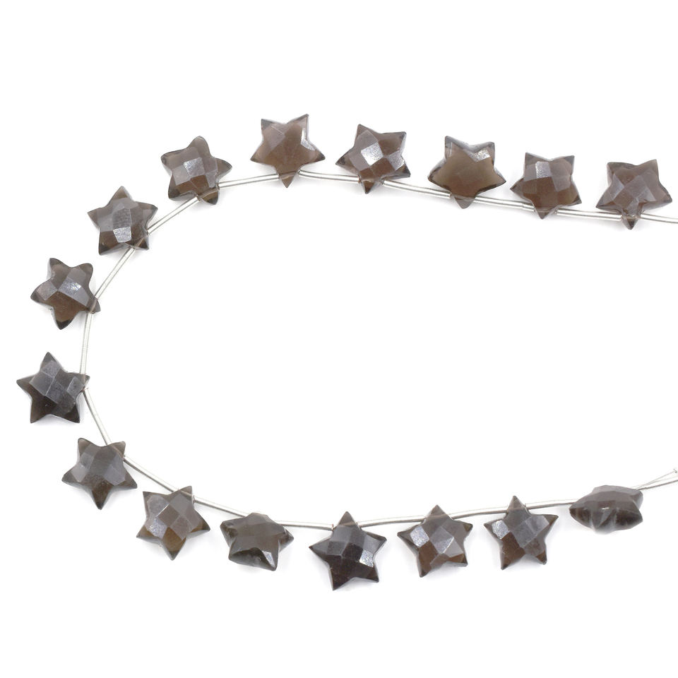 Smoky Quartz 10 To 11 MM Faceted Star Shape 16 Beads Strand