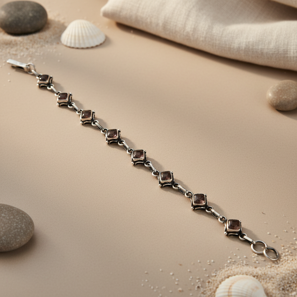 "Smoky Quartz Crystal Bracelet for Women-Sterling Silver Gift"