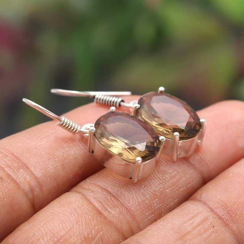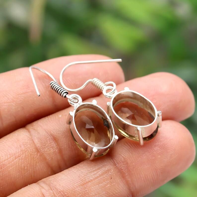 Smoky Quartz Earring 925 Sterling Silver Brown Colour Oval Shape Gemstone Solitaire Jewelry