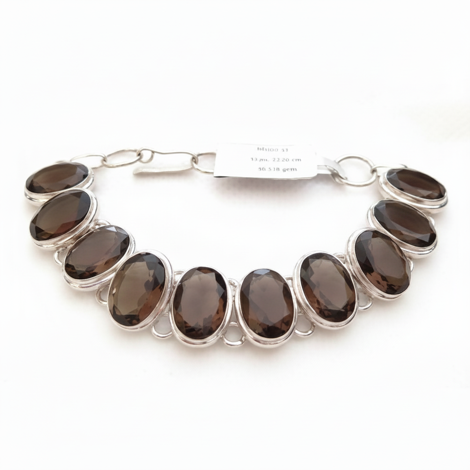 Smoky Quartz Sterling Silver 8-inch Fine Chain & Link Bracelet with Trendy Number Pattern for Weddings Parties Gifts