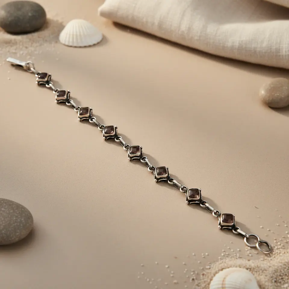 Smoky Quartz Sterling Silver Crystal Bracelet for Women Gift