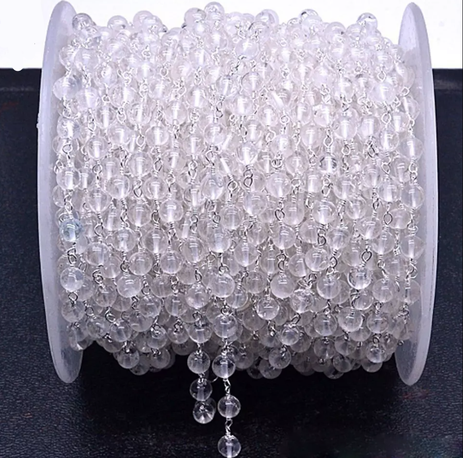 Smoky Topaz Round Gemstone Faceted Beads Rosary Chain For Making Necklace Bracelets Earrings Jewelry Silver Plated Bulk Roll DIY