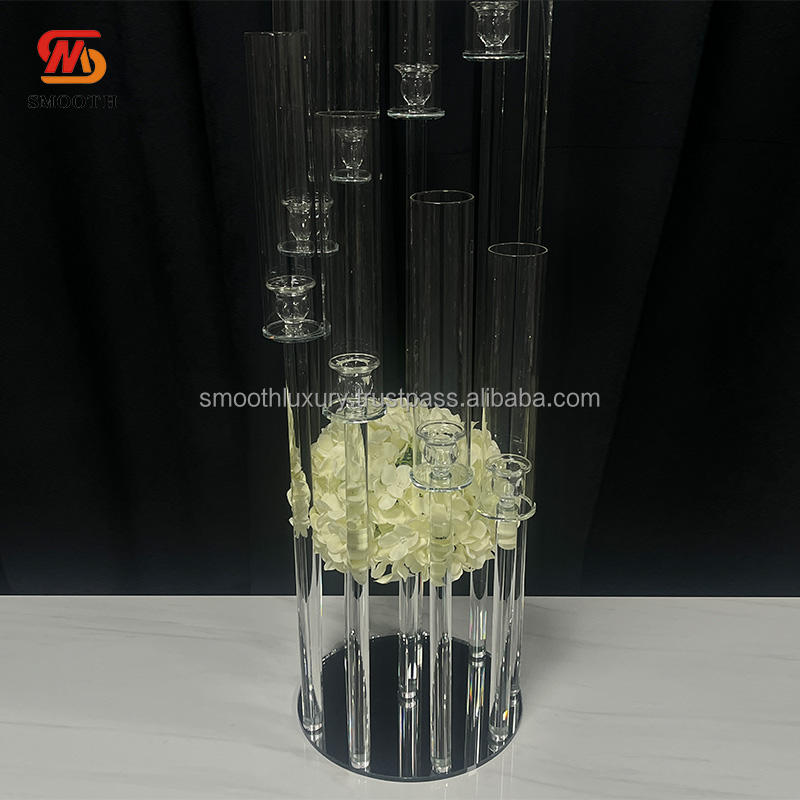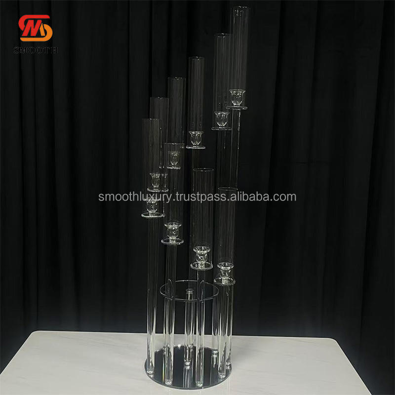 Smooth Customized Professional Clear Crystal Glass Candelabra Crystal Candle Holder Wedding Decoration Table Centerpieces