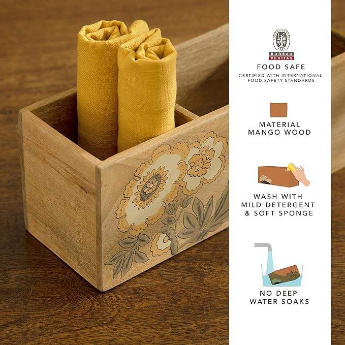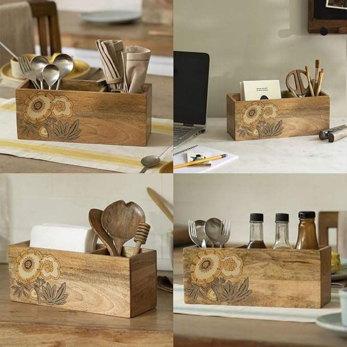 Smooth Finish Wooden Printed Utensil Holder Affordable Countertop Storage for Cutlery Printed Wooden Utensil Holder