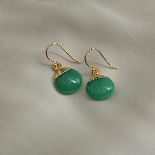 Smooth Green Onyx Gemstone Pendant, 8-10mm Polished Tumble Charm with Gold Electroplated Cap for Jewelry Making