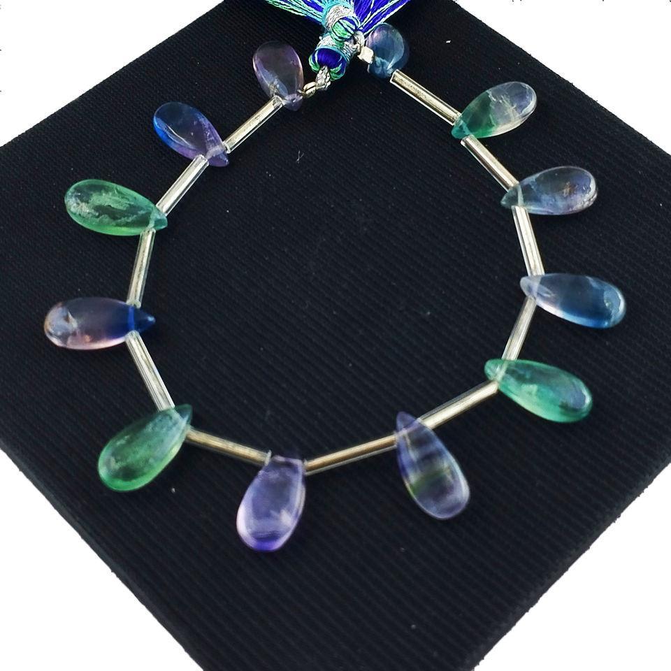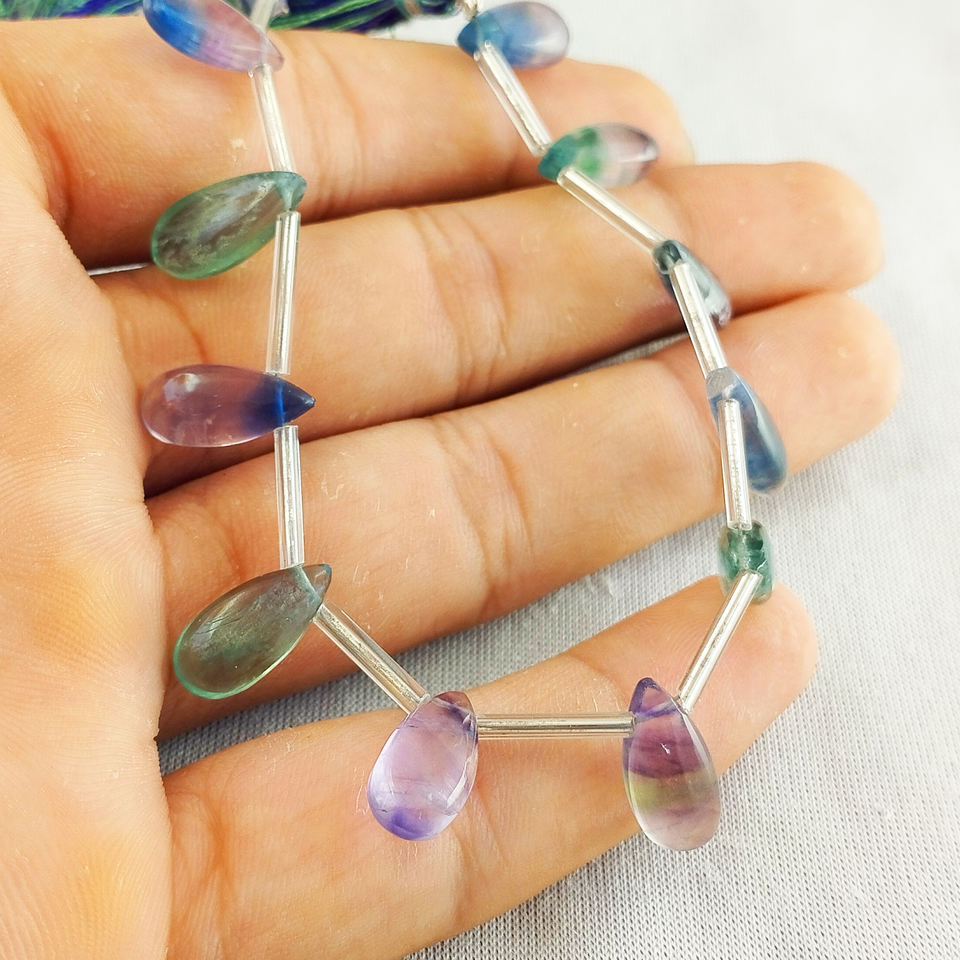 Smooth Pear Shape Loos Beaded Strand Natural Fluorite Gemstone 8Inch Long Strand for Making Bead Jewel February Birthstone Charm