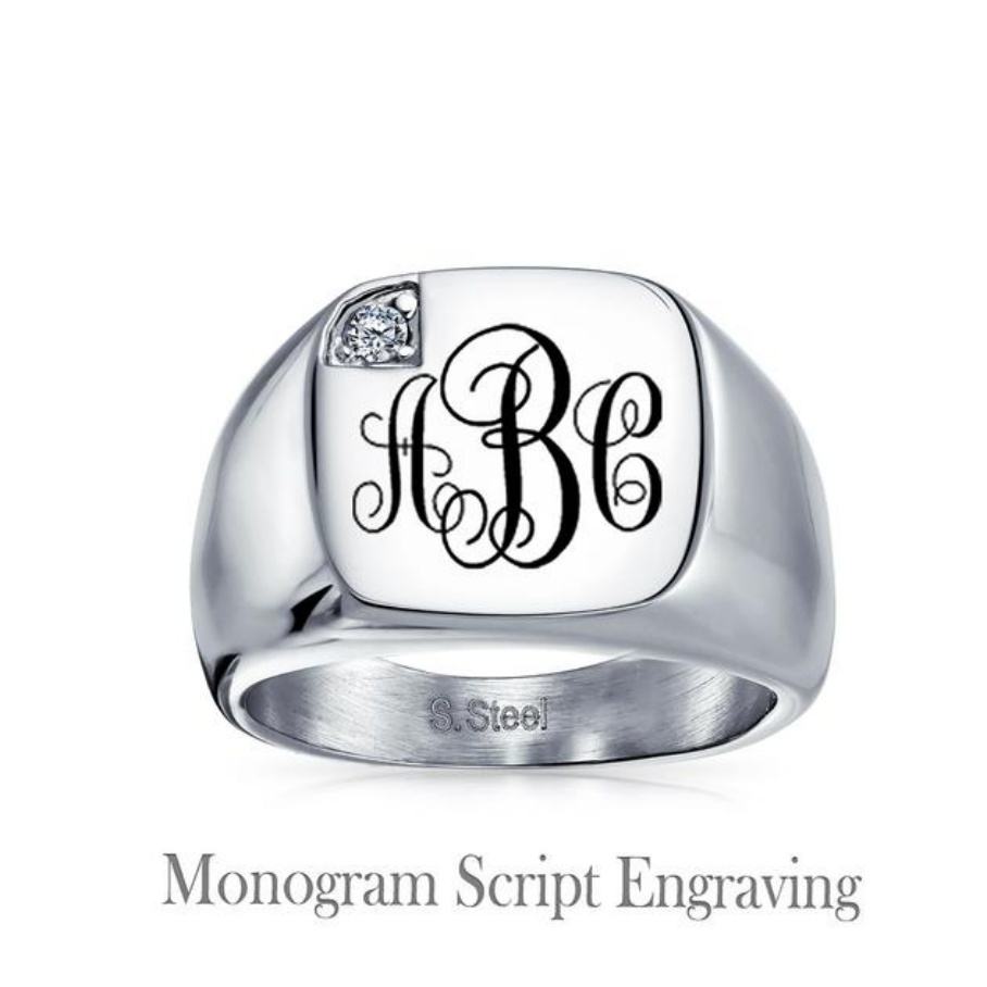 Smooth Polished Punk Style Signet Square Stainless Steel CZ Stone Ring CMA Certified for Men Father's Day Gift