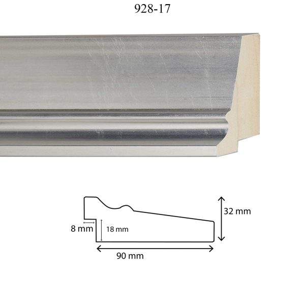 Smooth Silver Minimalist Artisan Frame Molding 928-17 90x32mm Wood Molding 15x8mm Rabbet Contemporary Art Mirror Frames