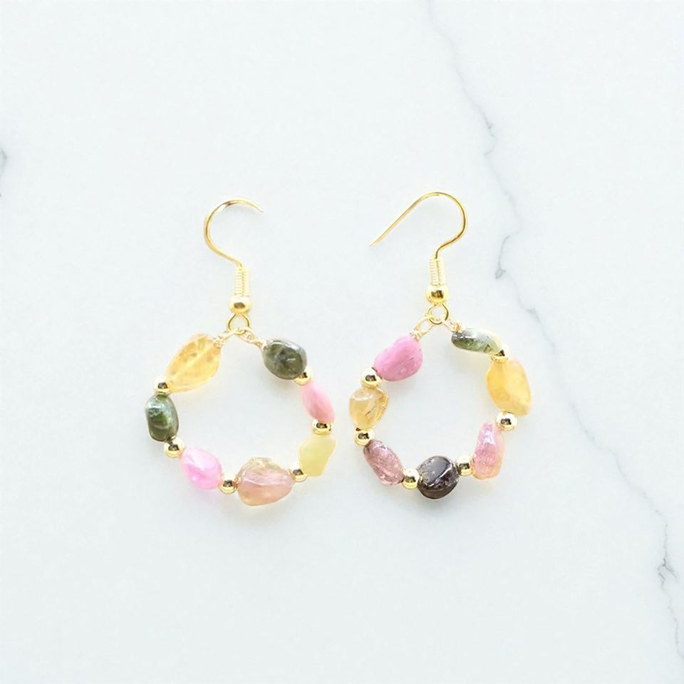 Smooth Tumble Multi Tourmaline Stone Hoops Drop Earrings - 925 Silver Earrings - 14k Gold Plated Earrings Wholesale