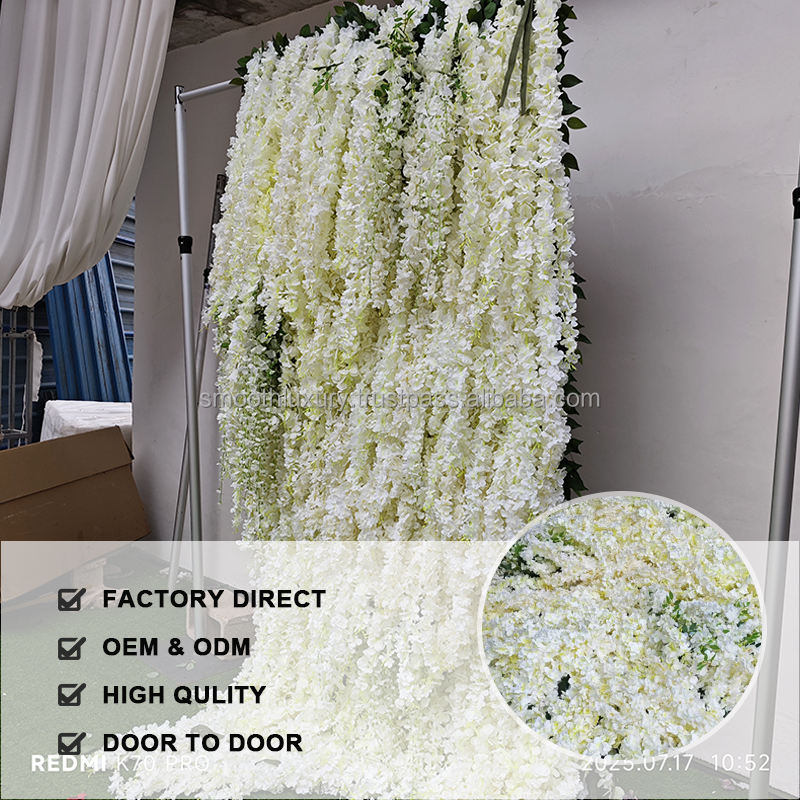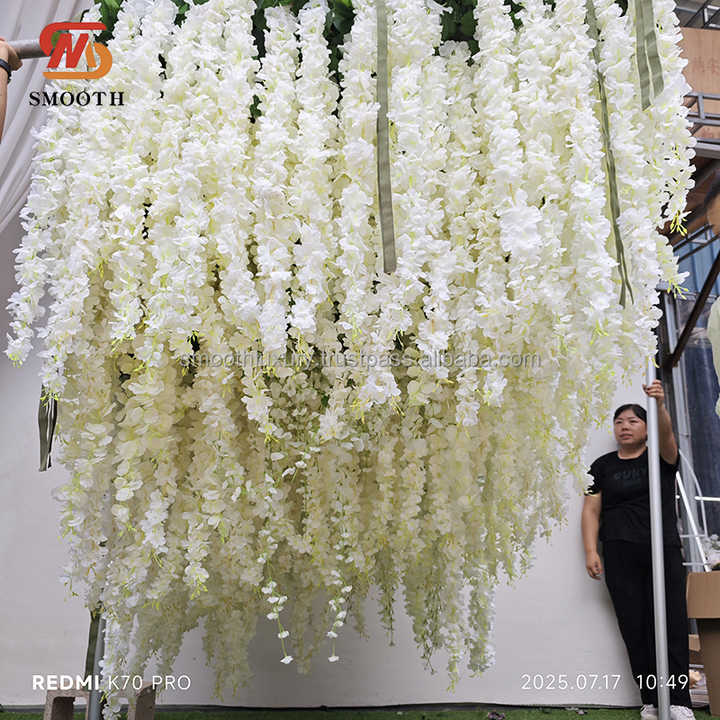 Smooth White Wisteria Artificial Flower Fabric Ceiling Decorative Hanging Stage Decoration for Celebration Ceremony Props
