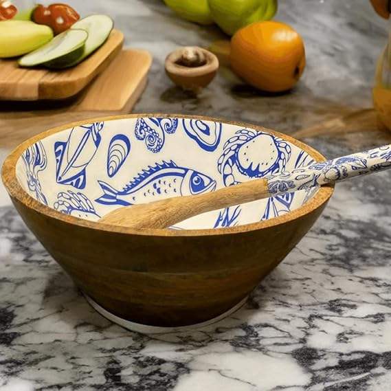 Printed Round Wooden Serving Bowl Custom Enamel Finished Serve Your Snacks & Salads In Style With Our Enamel Bowls Custom Size