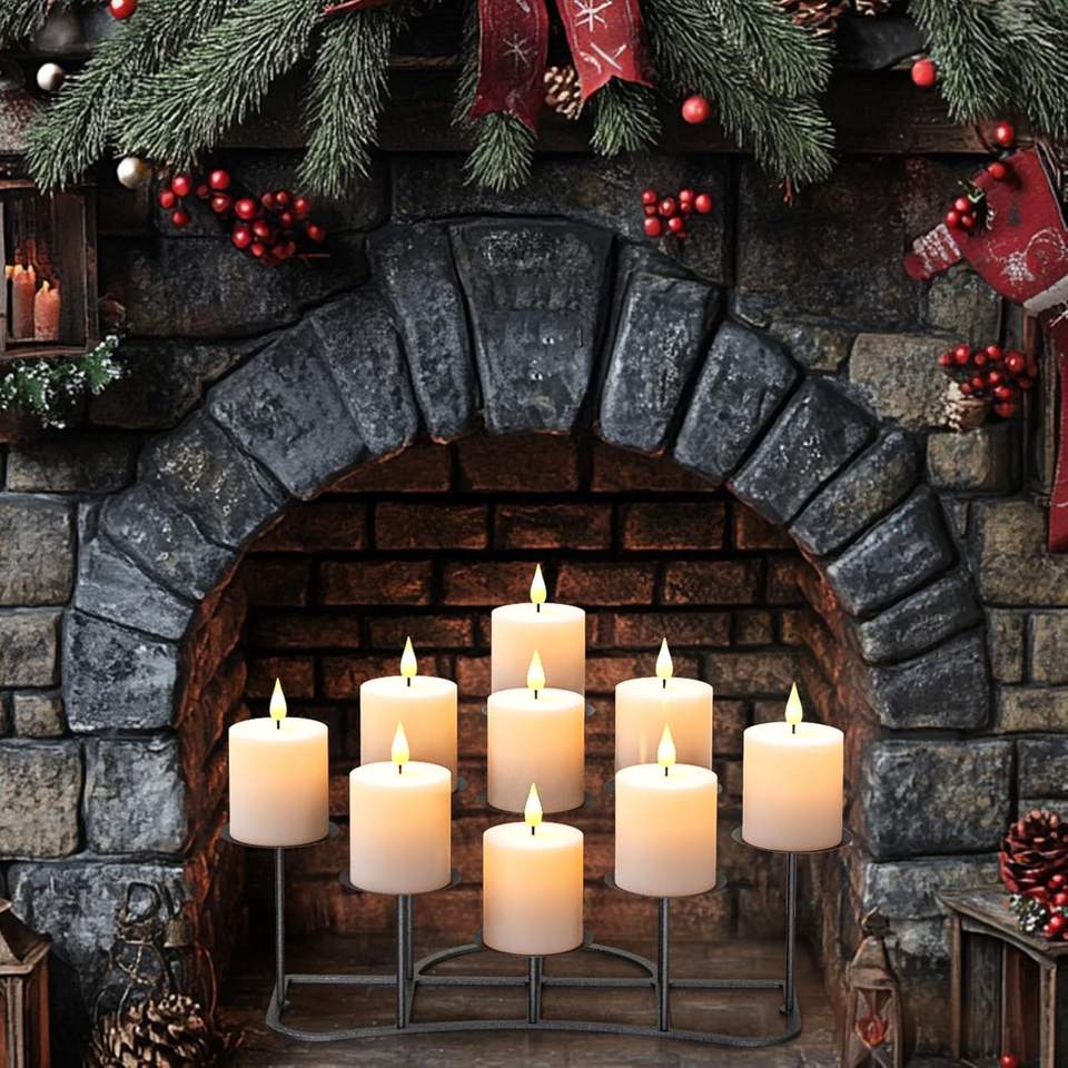 Smtyle DIY 9 Mantle Candelabra Flameless or Wax Candle Holders Black Iron Decoration for Fireplace Use on Desk/Floor