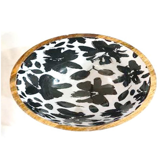 Snacks Serving Wooden Bowl Wholesale Exporter Large Decorative Salad Serving Enamelware Printed Wooden Bowl at Competitive Price