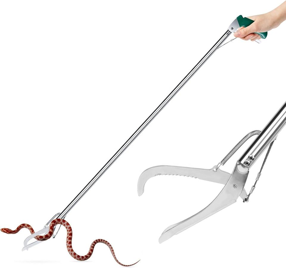 Snake Holder 52" Extra Long Snake Tongs Reptile Grabber Catcher, Stainless Steel & Wide Jaw Pick-up Handling Tool Snake Stick