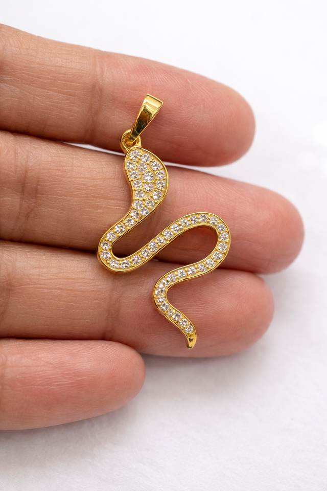 Snake Shape Pendant Diamond Cubic Zirconia 925 Sterling Silver Handmade Pendant Necklace - Gemstone Jewelry