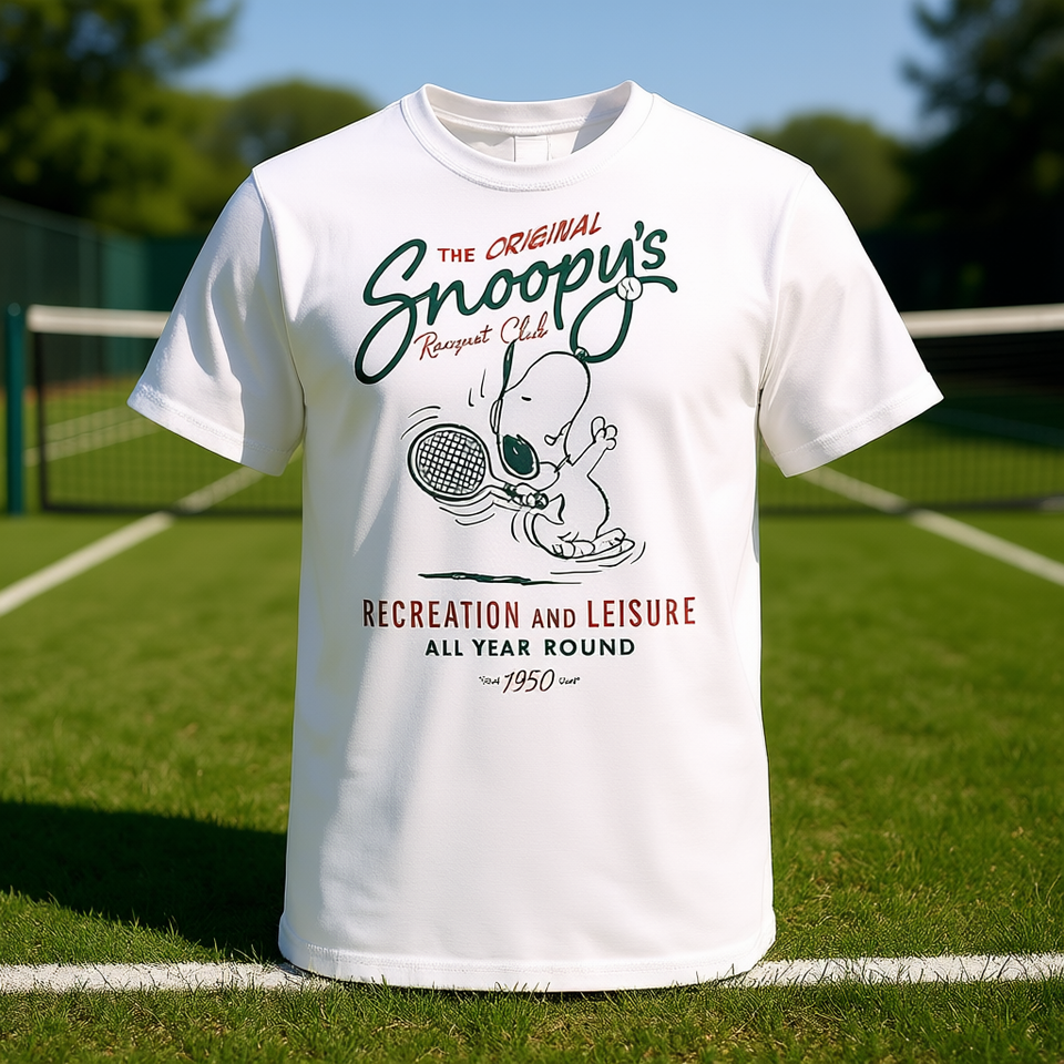 Snoopy Racquet Club T-Shirt White Unisex Adult Medium Recreation And Leisure