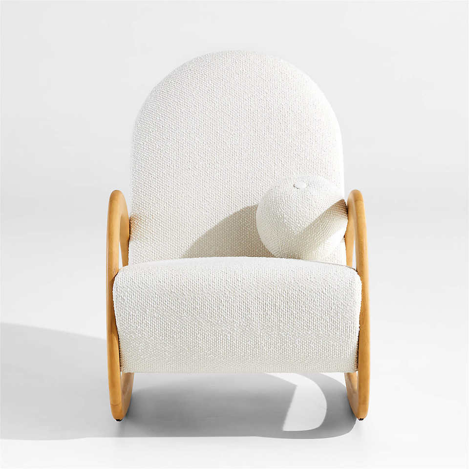 Snow Boucle Rocking Chair Made Of Mahogany Wood High Quality With Natural Finishing For Indoor Use