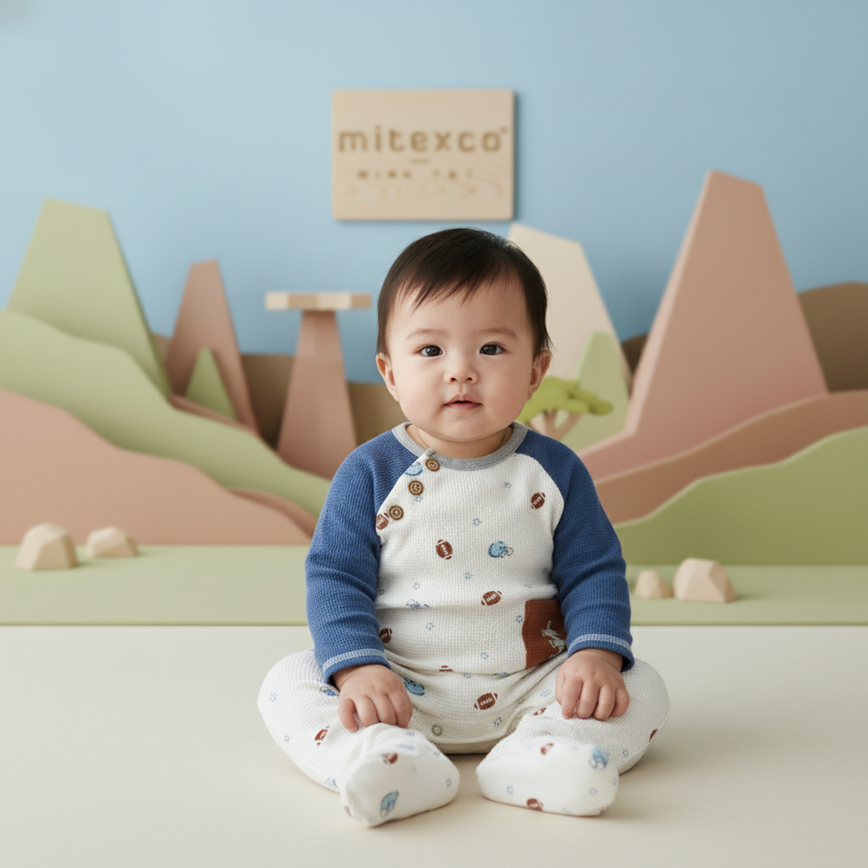 Snuggle-Soft Baby Waffle Knit Romper | Cozy Long Sleeve Footed Jumpsuit - Football Print Cotton Newborn Sleepwear