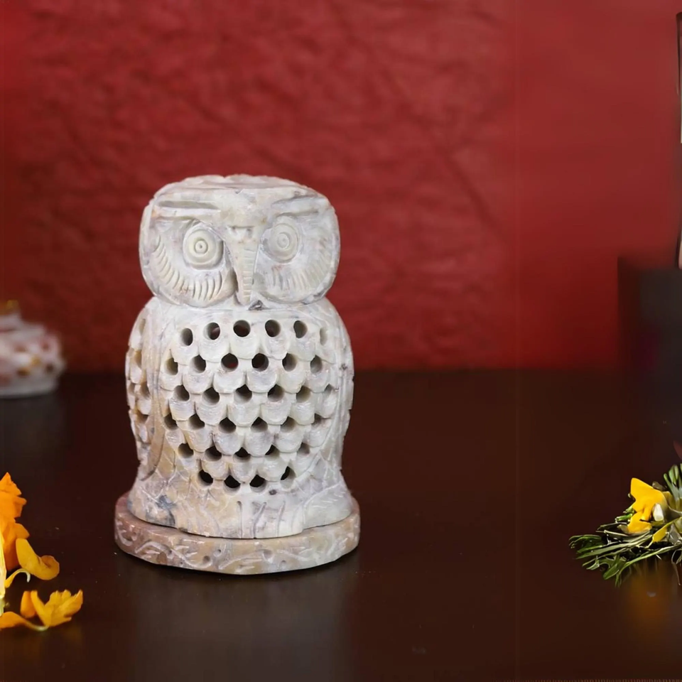 Owl-Shaped Natural Soapstone Handmade Eco-Friendly Heat Resistant Tealight Holder Home Decoration Christmas Candle Holder