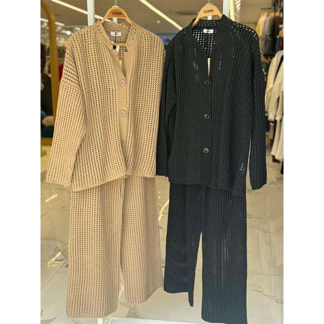 Sobe Women Knit Cardigan Set 100% Cotton Breathable Loose Fit Crochet Sweater Outfit For Casual Wear