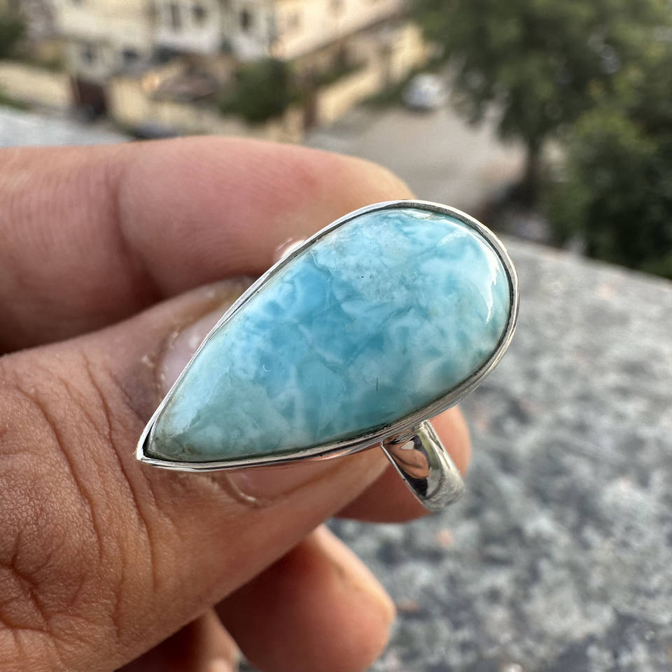Sobiz Designs Wholesale Natural Blue Larimar 925 Sterling Silver Bezel Set Oval Bohemia Style Unisex Women's Ring-Handmade