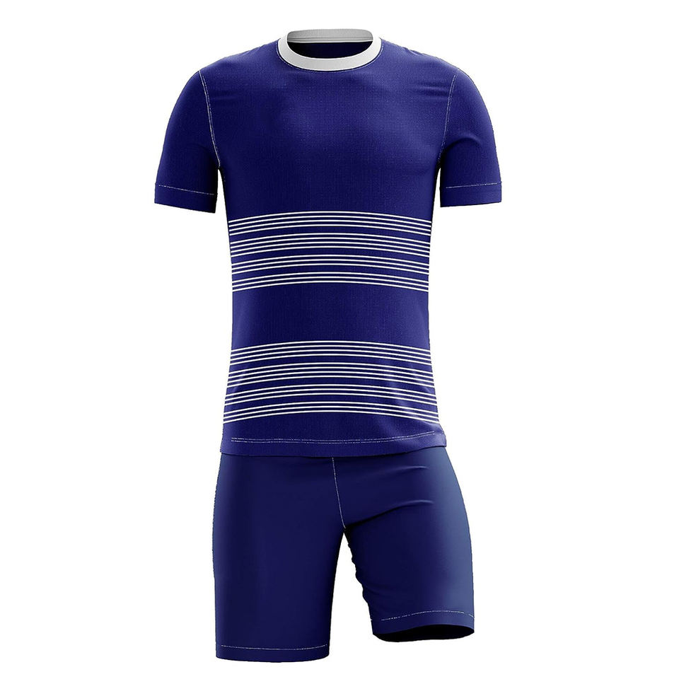 Soccer Uniforms For Adult navy Blue Color And White Strips Half Sleeve Polyester Fabric Club Training Soccer Uniforms Set