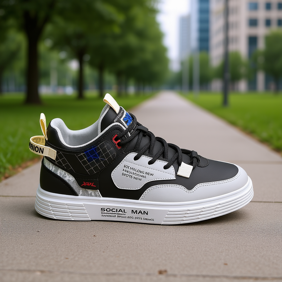 Social Man Men's High Top Casual Basketball Shoes Geometric Pattern Lace Up Rubber Sole All Match Fashion Trend Sneakers