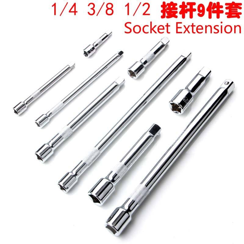 Socket Extension Rod Set 1/4 3/8 1/2 Inch Chrome Plated Steel Ball Hex Drive Straight Handle For Automotive Repair