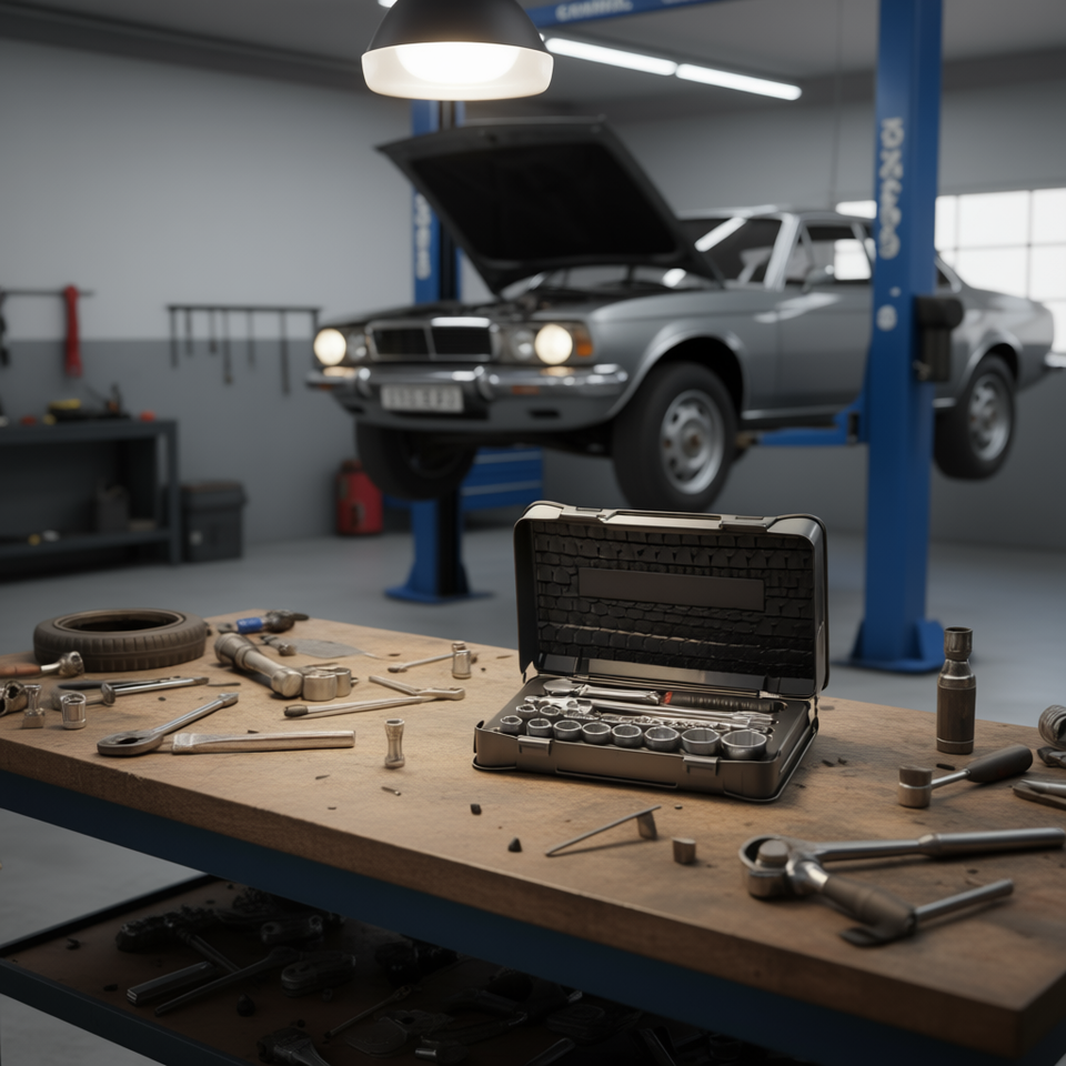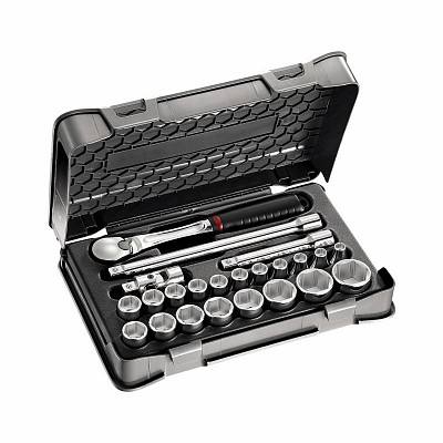 Socket Set 1/2 In Drive 60 Piece Metric Chrome Vanadium Steel Tool Kit With Ratchet And Extension Bars For Automotive Repair