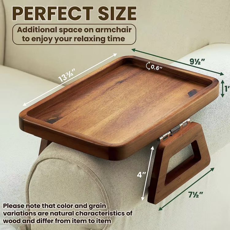 Sofa Armrest Table Bamboo Sofa Tray for Arm Foldable Couch Tray With 360 Rotating Phone Holder