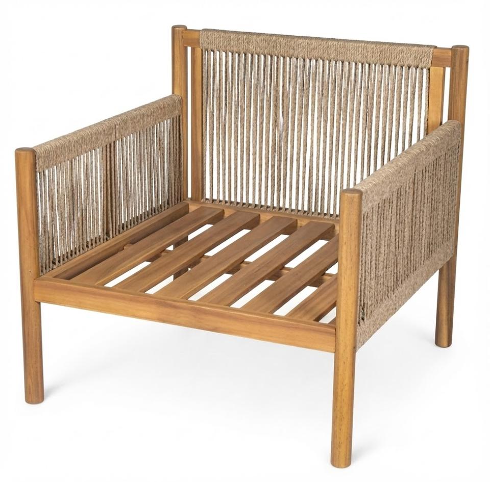 Sofa Recliner Armchair Acacia Solid Wood Woven Rope With Seat Cushion Eco-Friendly Modern Minimalist Design For Outdoor Use