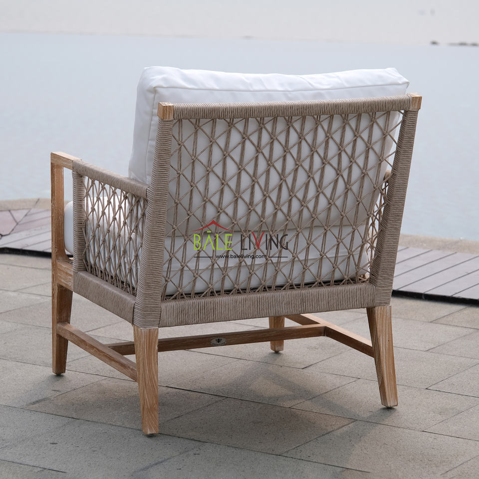 Sofa Sweden Chair Solid Teak Rope Weave Deep Seating Garden Sofa with Cushions Weather-Resistant for Villa And Hotel