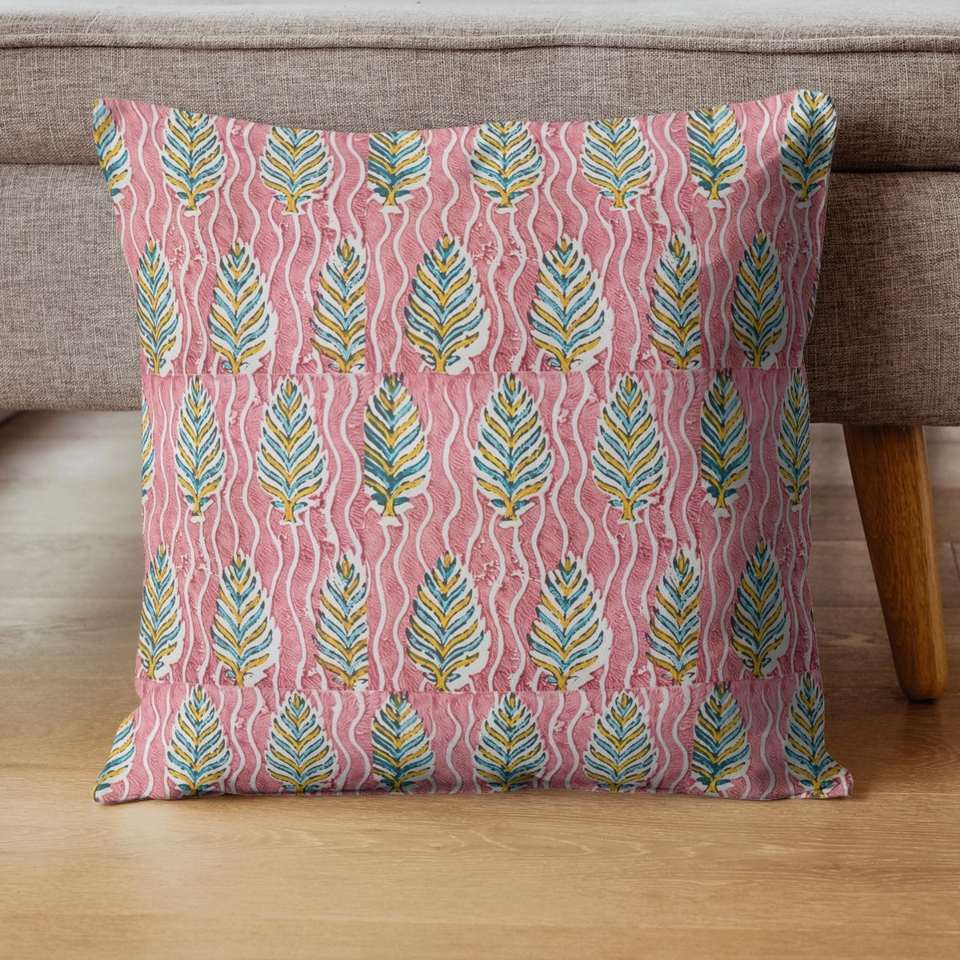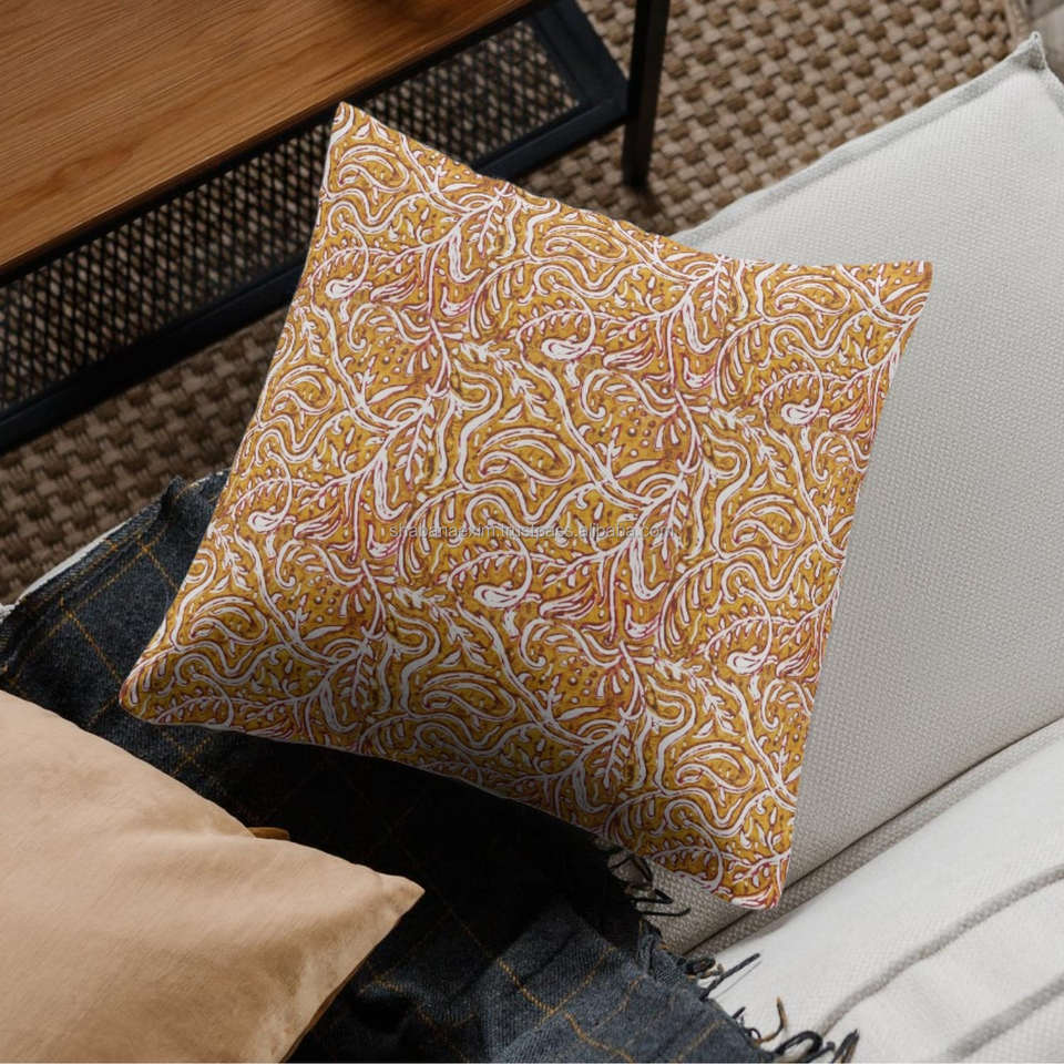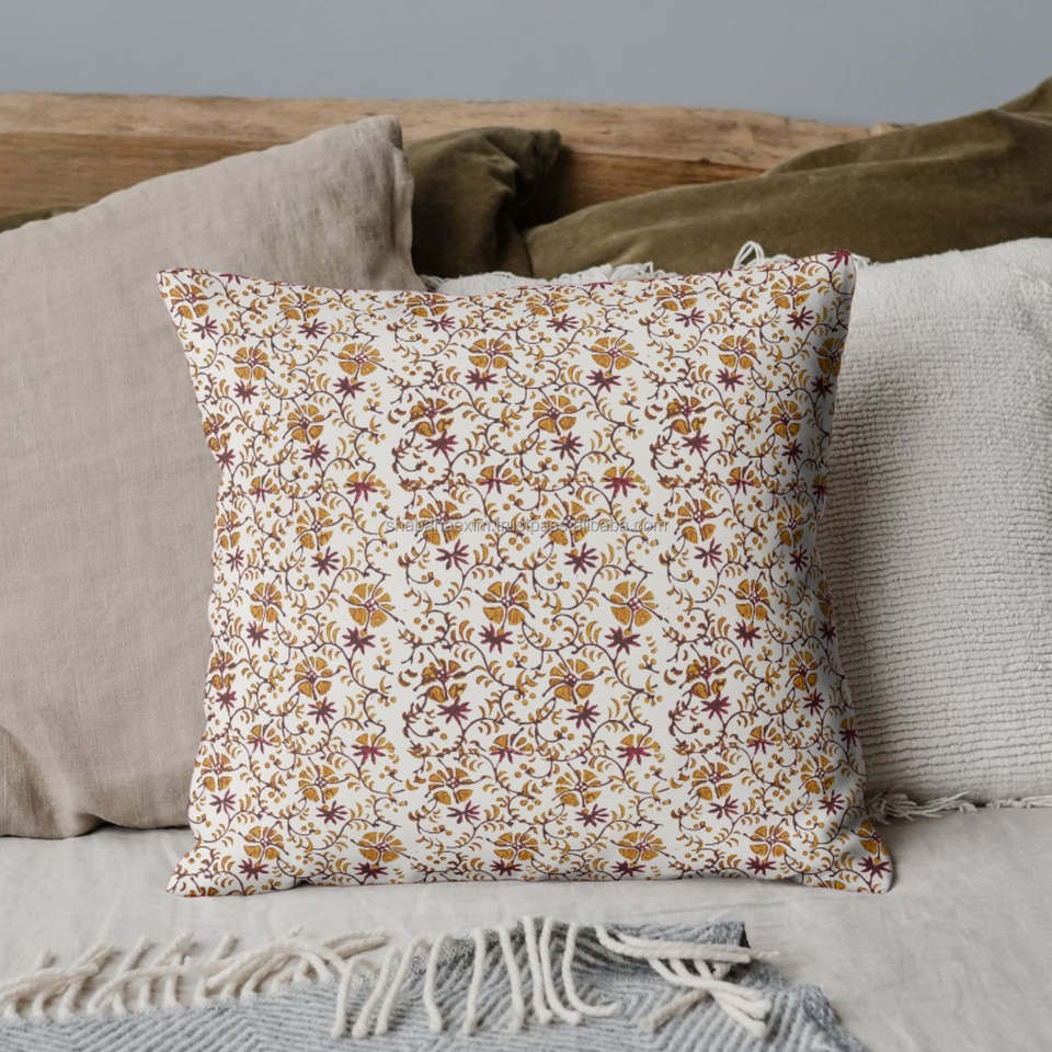 Soft 100% Cotton Sham Cover with Hand Block Printed Sustainable Lightweight Block Printed Cushion Covers Floral Design