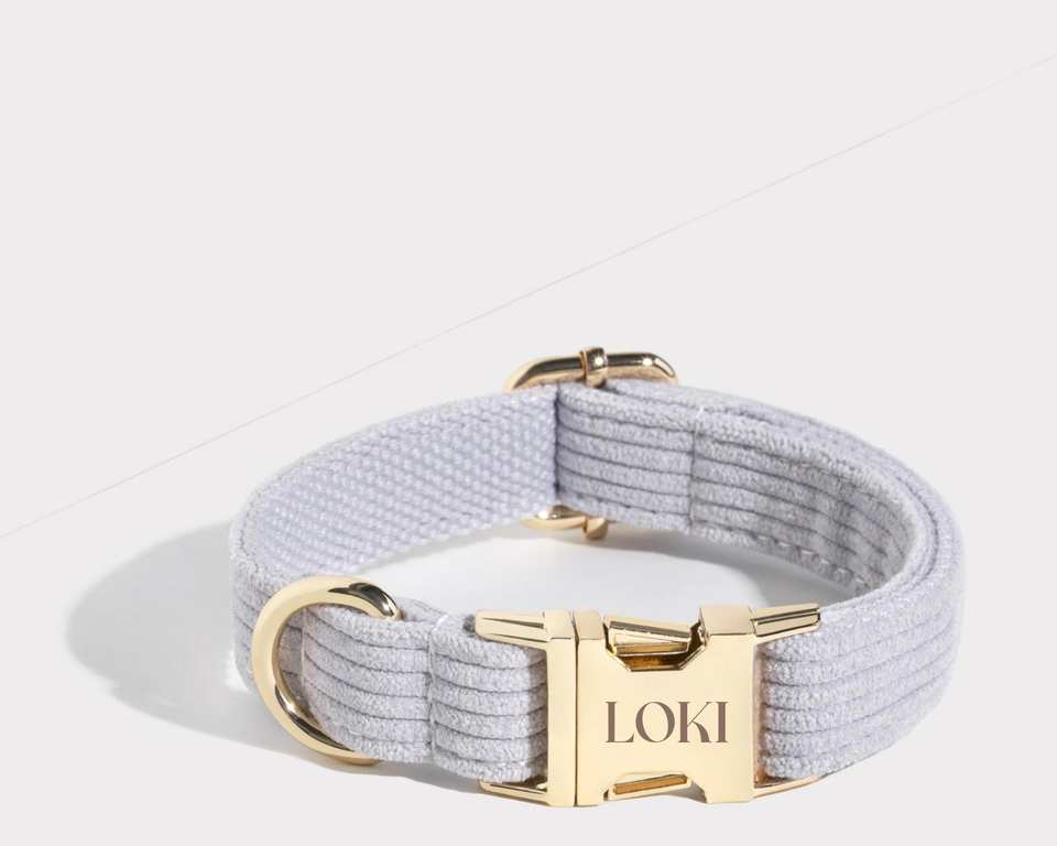 Soft Corduroy Dog Collar and Leash Set with Poop Bag Dispenser Grey Boy Puppy Leash for Wedding Gift Luxurious Design
