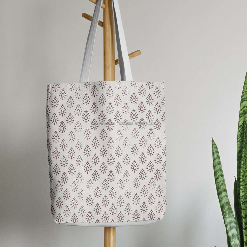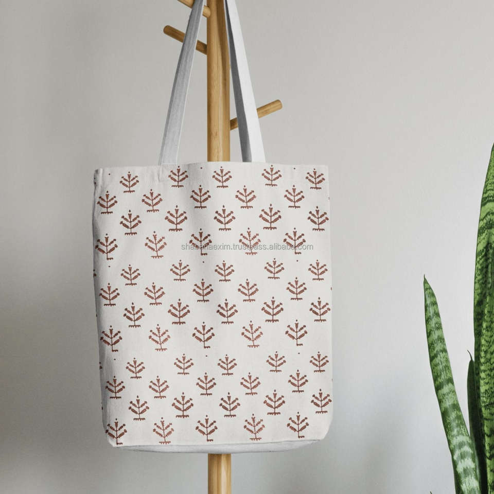 Soft Cotton Leaf Pattern Block Printed Tote Bag High Quality Traditional Handbag Outgoing Travel Friendly Side Bags
