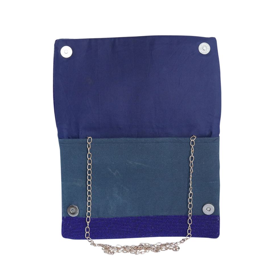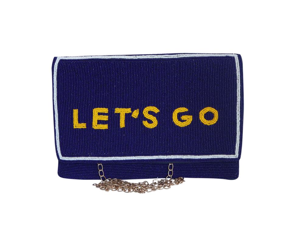 Soft Cotton Nylon Beaded Embroidered Purses New Trendy Blue Yellow Design Large Capacity Zip Closure Single Chains for Game Day