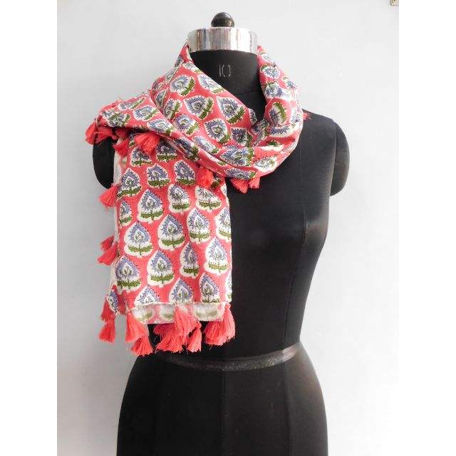 Soft Cotton Square Dupatta Floral Summer Neck Wrap Tassel Scarf Women Hijab Shawl Bandana